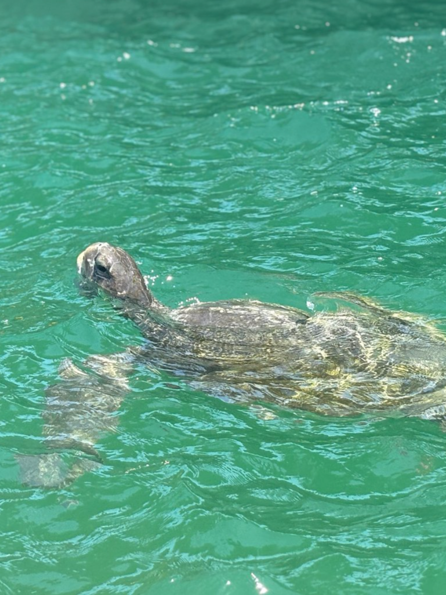 Before we got in the water, Katerina warned me of the long nails the turtles have on the front of their claws, should I get too close. While she preferred that I not make loud noises or touch the turtles, she said some of them were very social and would probably want to get close. They move quickly, and keeping calm in the water was crucial. We put on our snorkels and fins and hopped in.